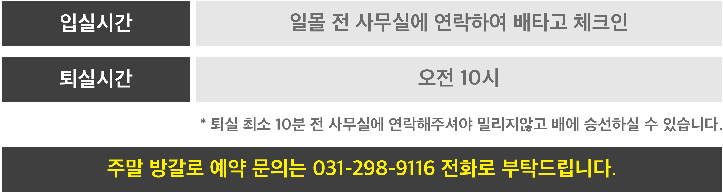 육지와 연결되어있지않아, 체크인-아웃은 배로 하게 되며
